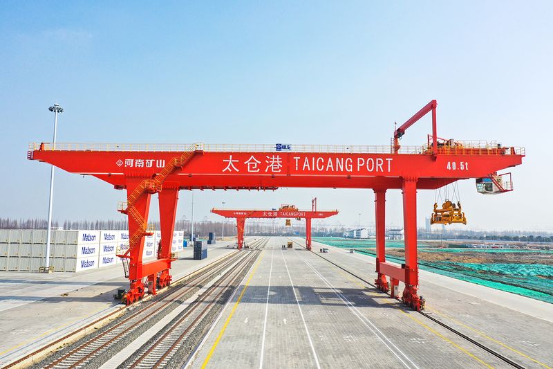▲公司研发的高品质、高性能的新型双梁起重机,用于江苏申港高端制造装备领域的生产制造,为我国核电行业贡献力量。
