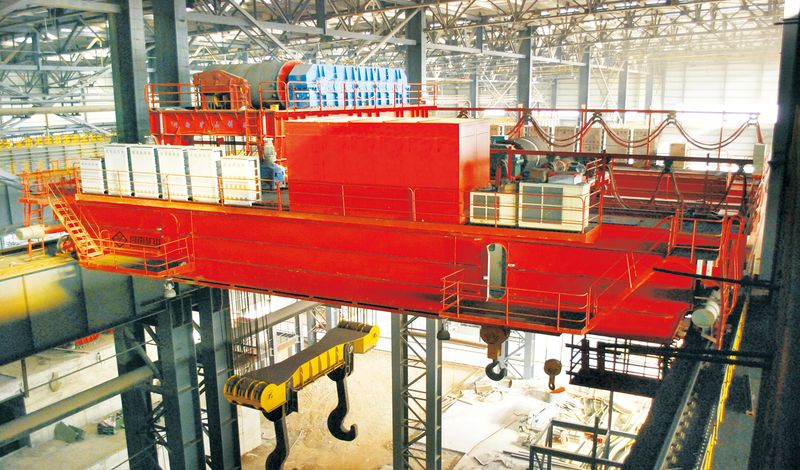 ▲公司承制的鑫阳钒钛360t铸造起重机,是河南ag九游会j9集团精品战略中“大吨位”起重机产品代表作之一,是目前国内起重量较大的铸造起重机。