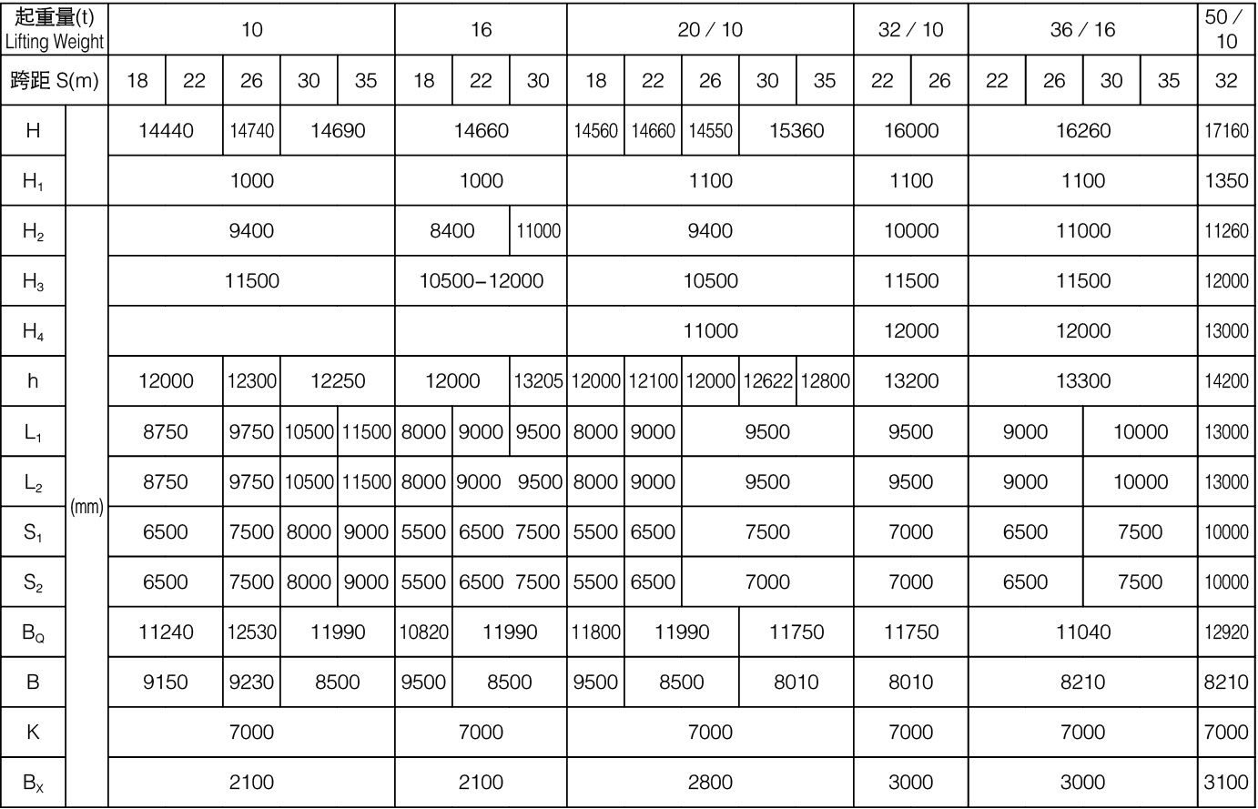 U型10~50/10吨双梁吊钩门式起重机