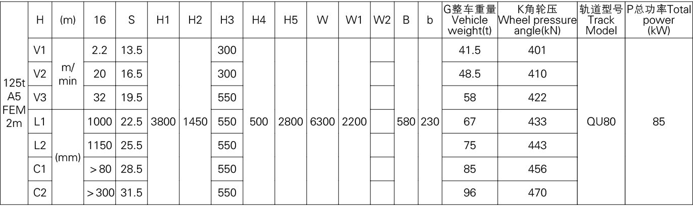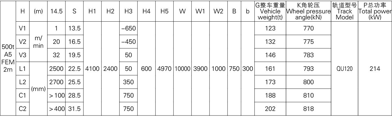 3、表中的尺寸,重量,轮压供客户订货时参考,如果客户的需要条件发生变化,如工作级别,速度,起升高度有变化时,相应的参数,尺寸,重量,轮压等都会发生变化,实际的参数,质量,轮压以合同的要求为准。